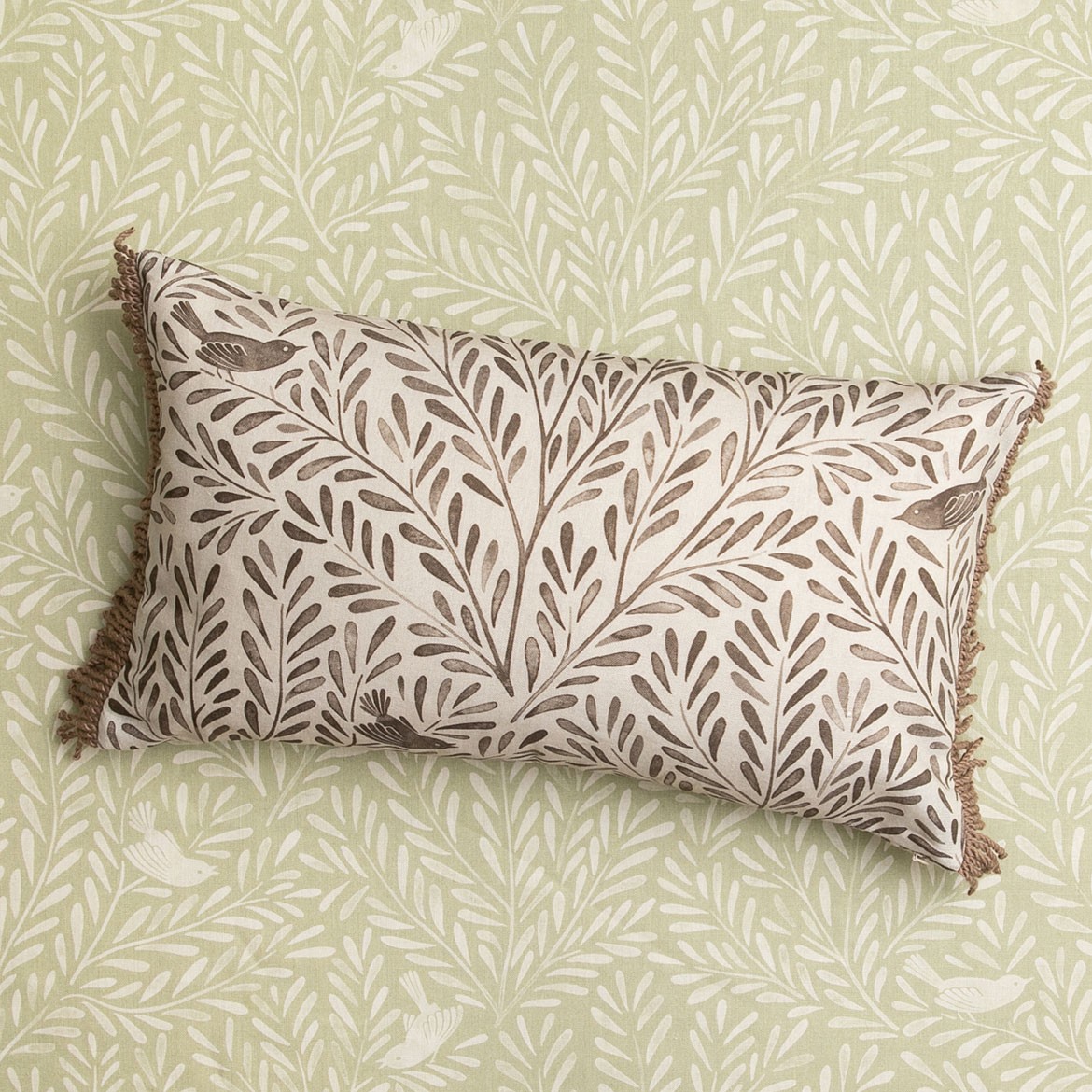 SPRIG is a dainty leaf pattern in a floating layout. Informal and feminine, sprig patterns were hugely popular as 17th & 18th Century dress fabrics. SONGBIRDS, or perching birds, joyfully trill in a tree of feathery fan-shaped leaves.