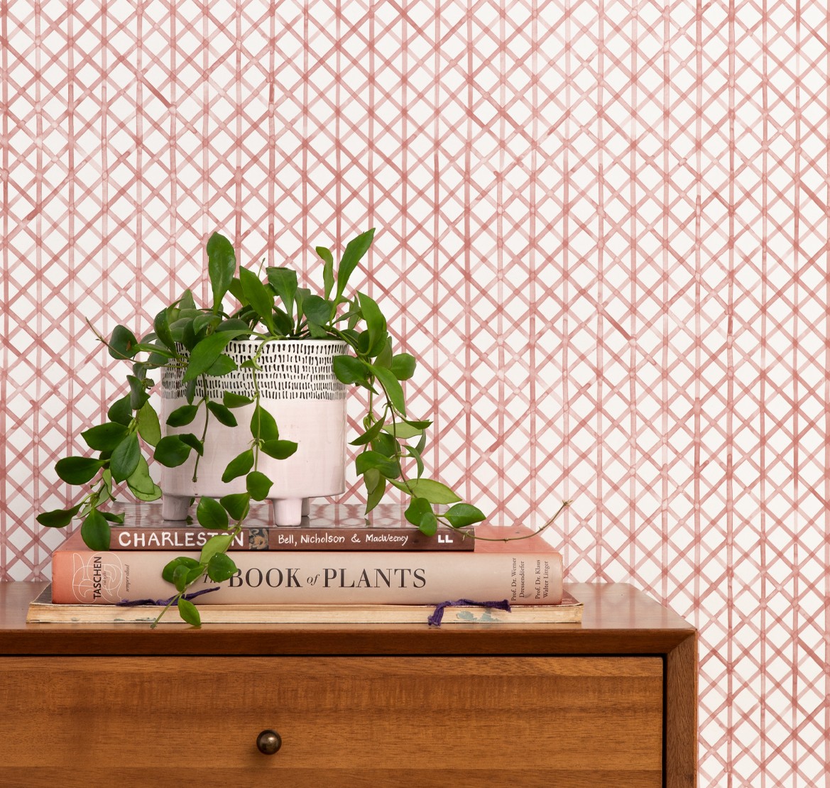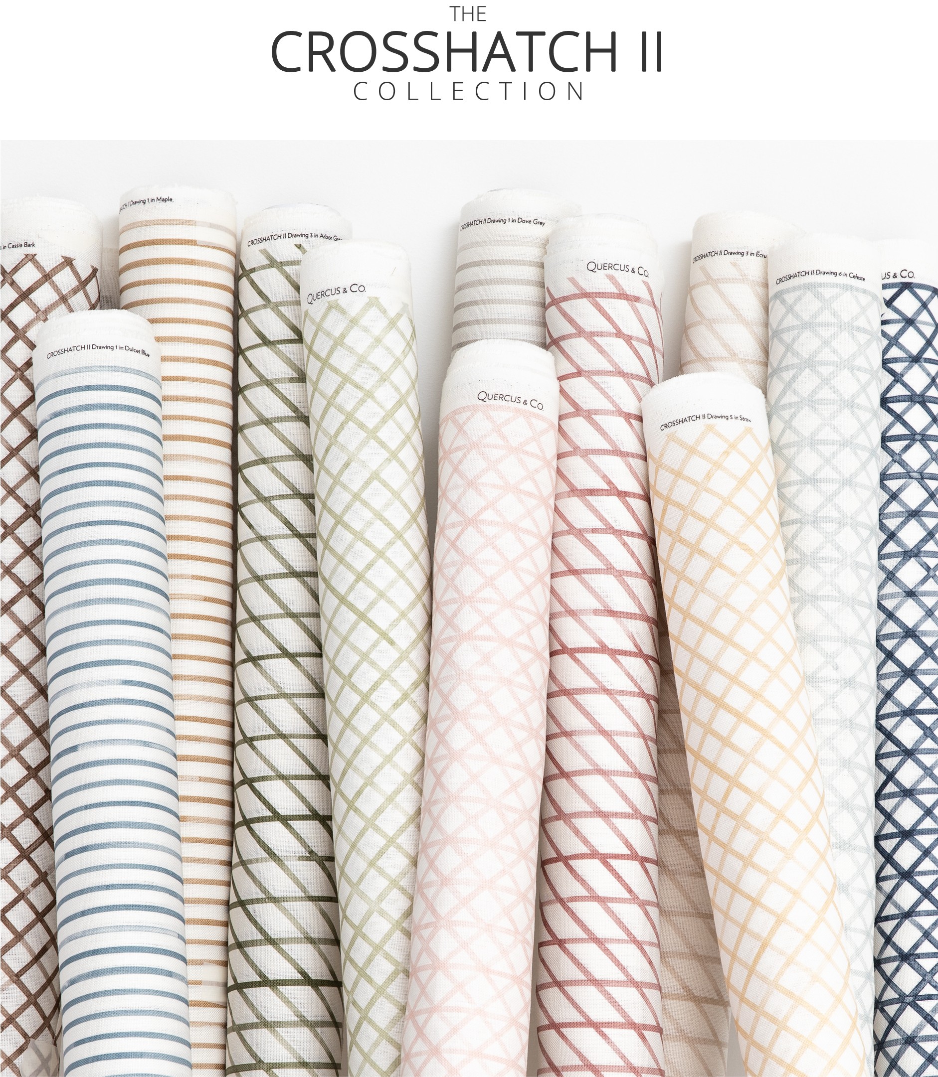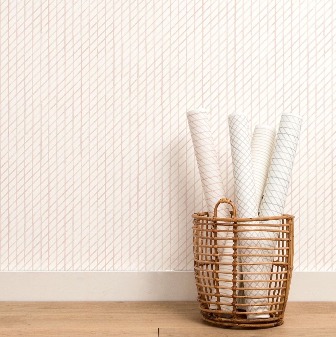 Crosshatch II features four geometric patterns which have been hand-painted with confidence and precision in fresh and bright colours. Their lightness makes them suitable for sunny, happy spots. Think of sunrooms, garden rooms, kids’ rooms, nurseries, light-filled kitchens and powder rooms.