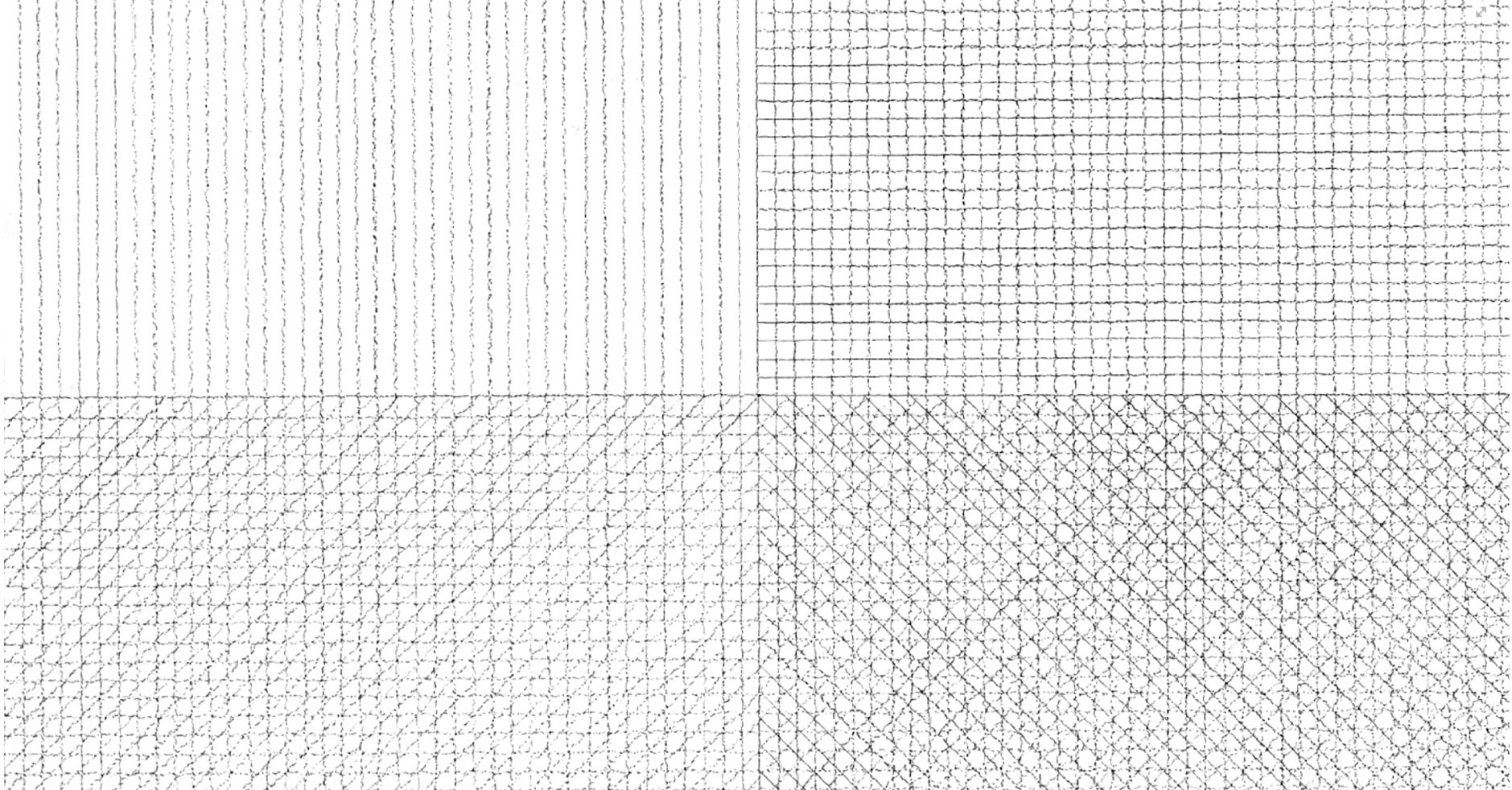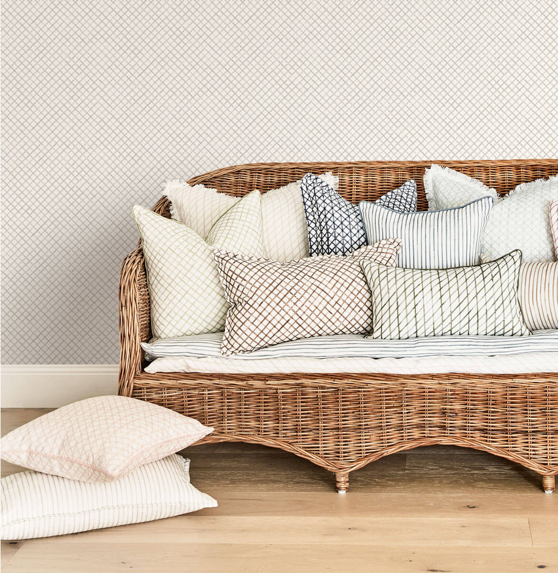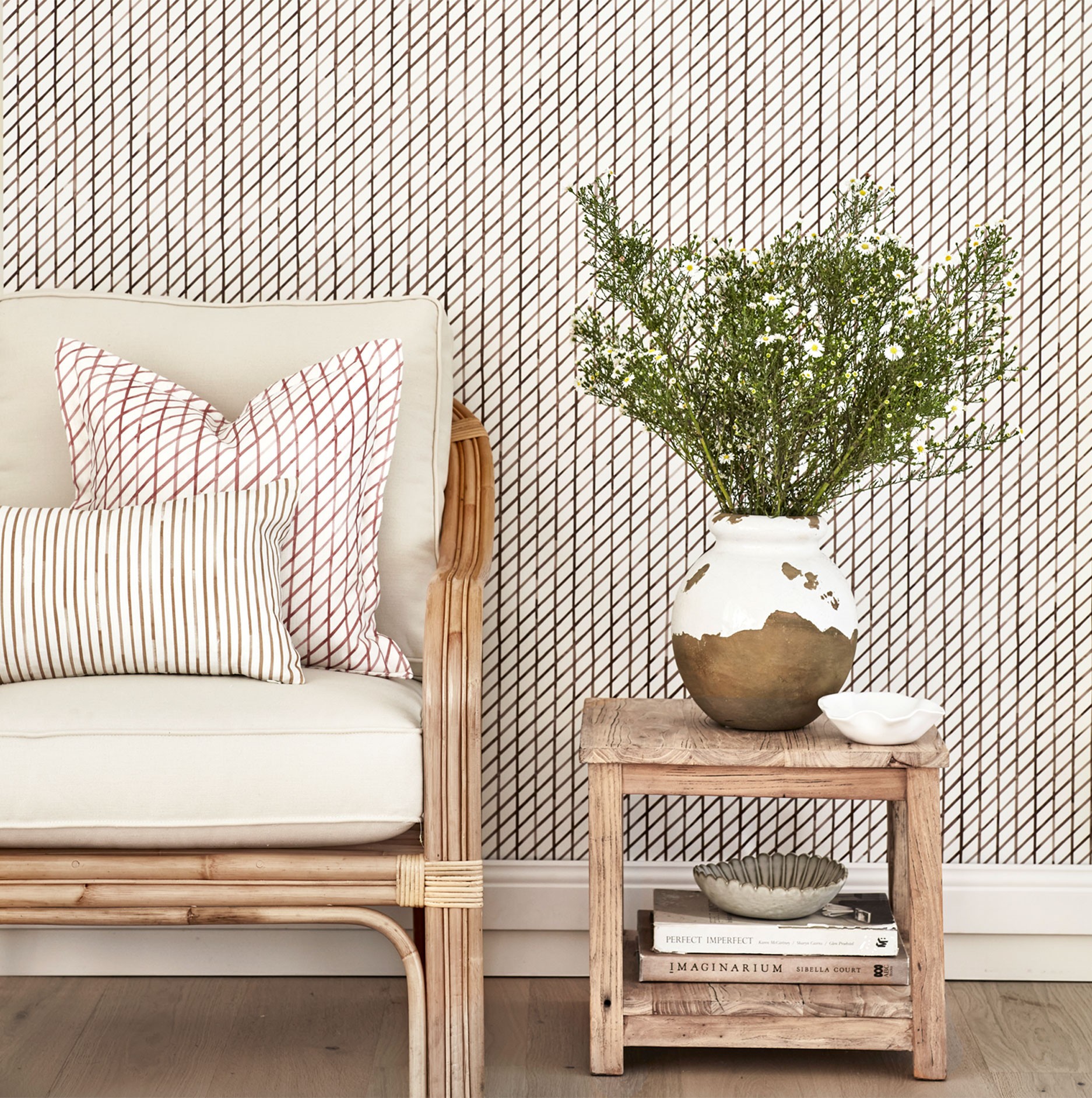 Crosshatch II features four geometric patterns which have been hand-painted with confidence and precision in fresh and bright colours. Their lightness makes them suitable for sunny, happy spots. Think of sunrooms, garden rooms, kids’ rooms, nurseries, light-filled kitchens and powder rooms.