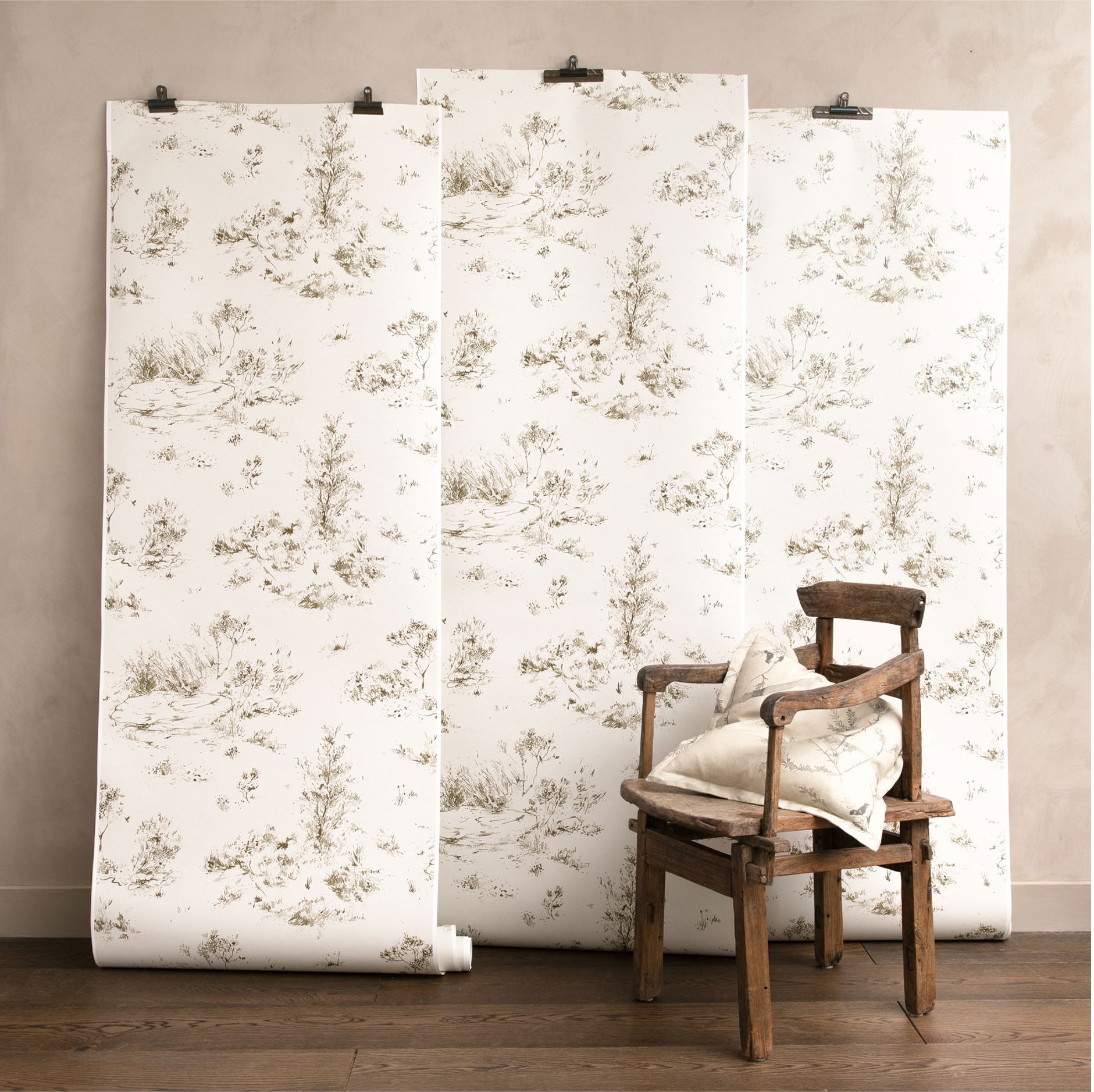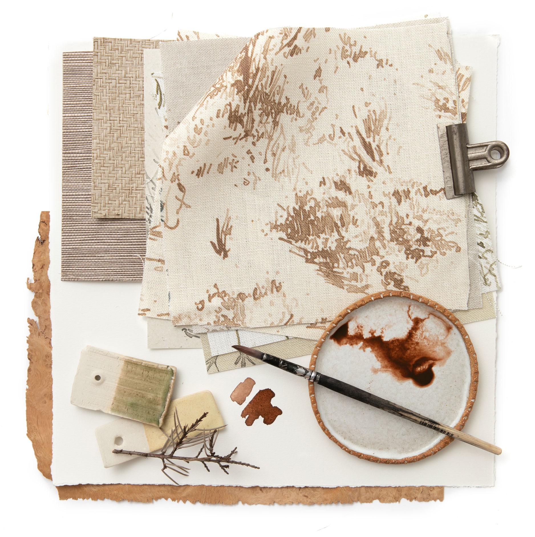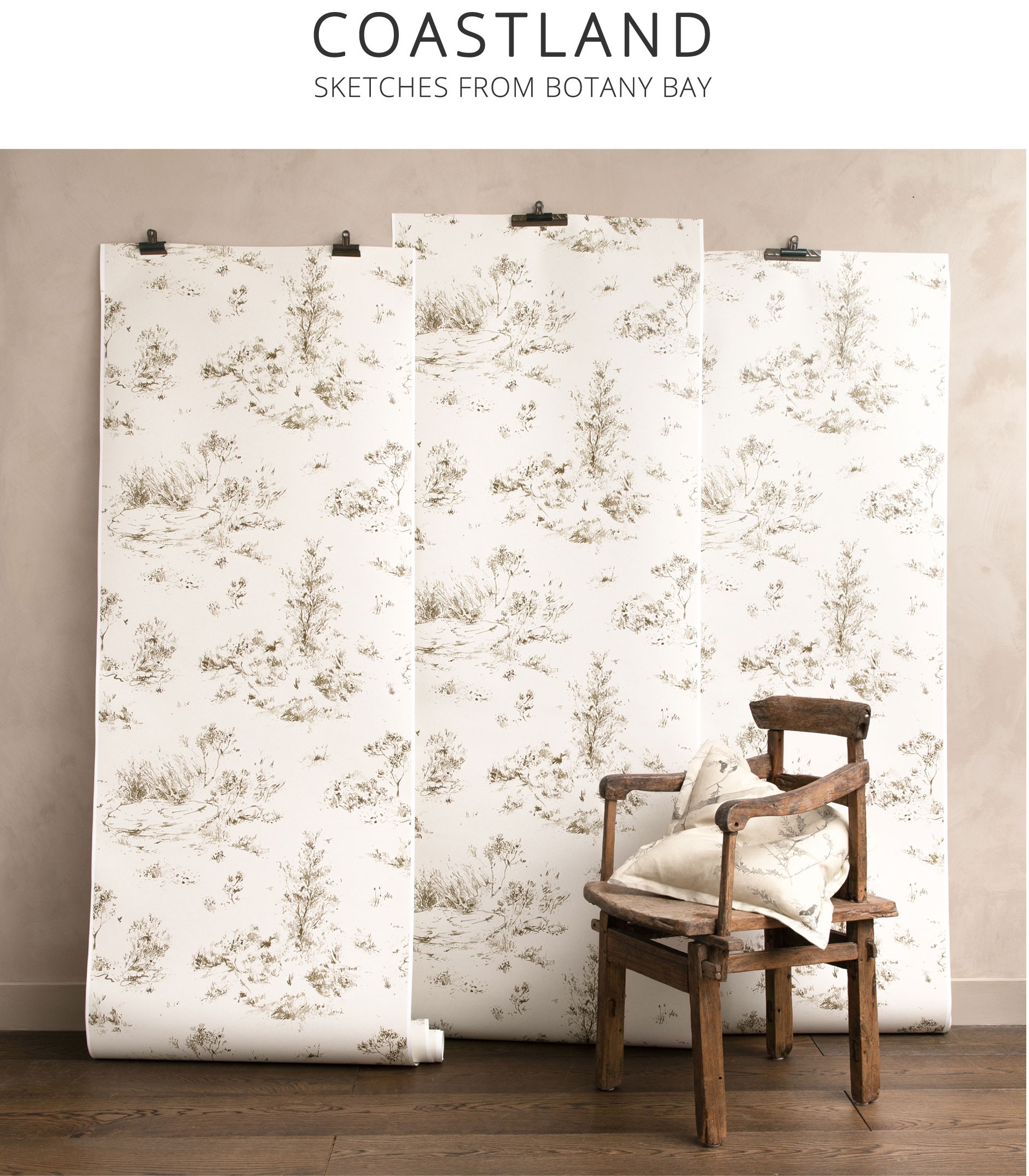 Light, papery off-whites and neutrals feature with sienna browns, bronze greens, misty blues and rusty ochres in a new revision of our original Coastland Collection, first released in 2012.