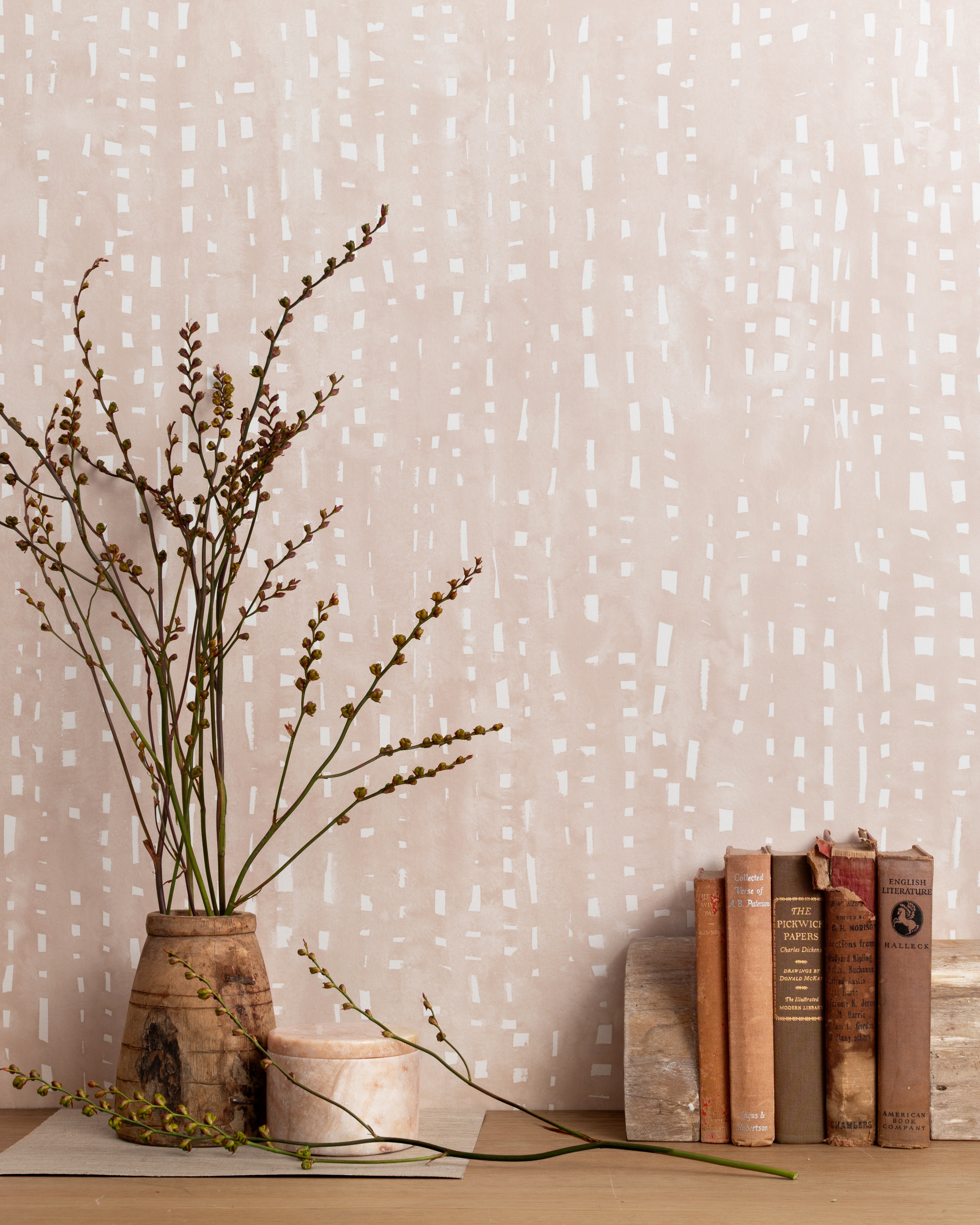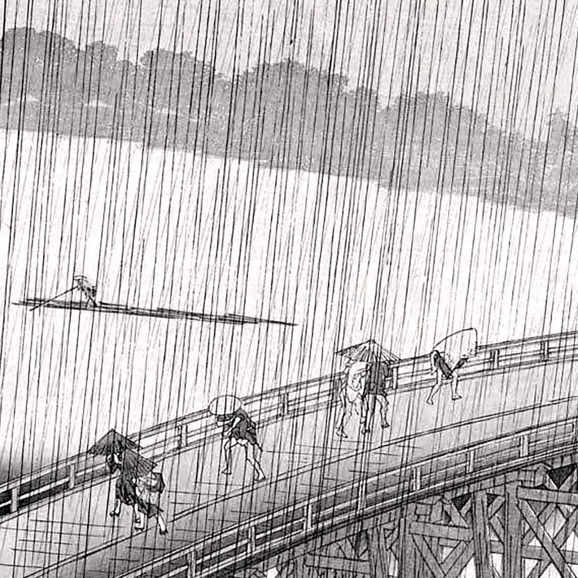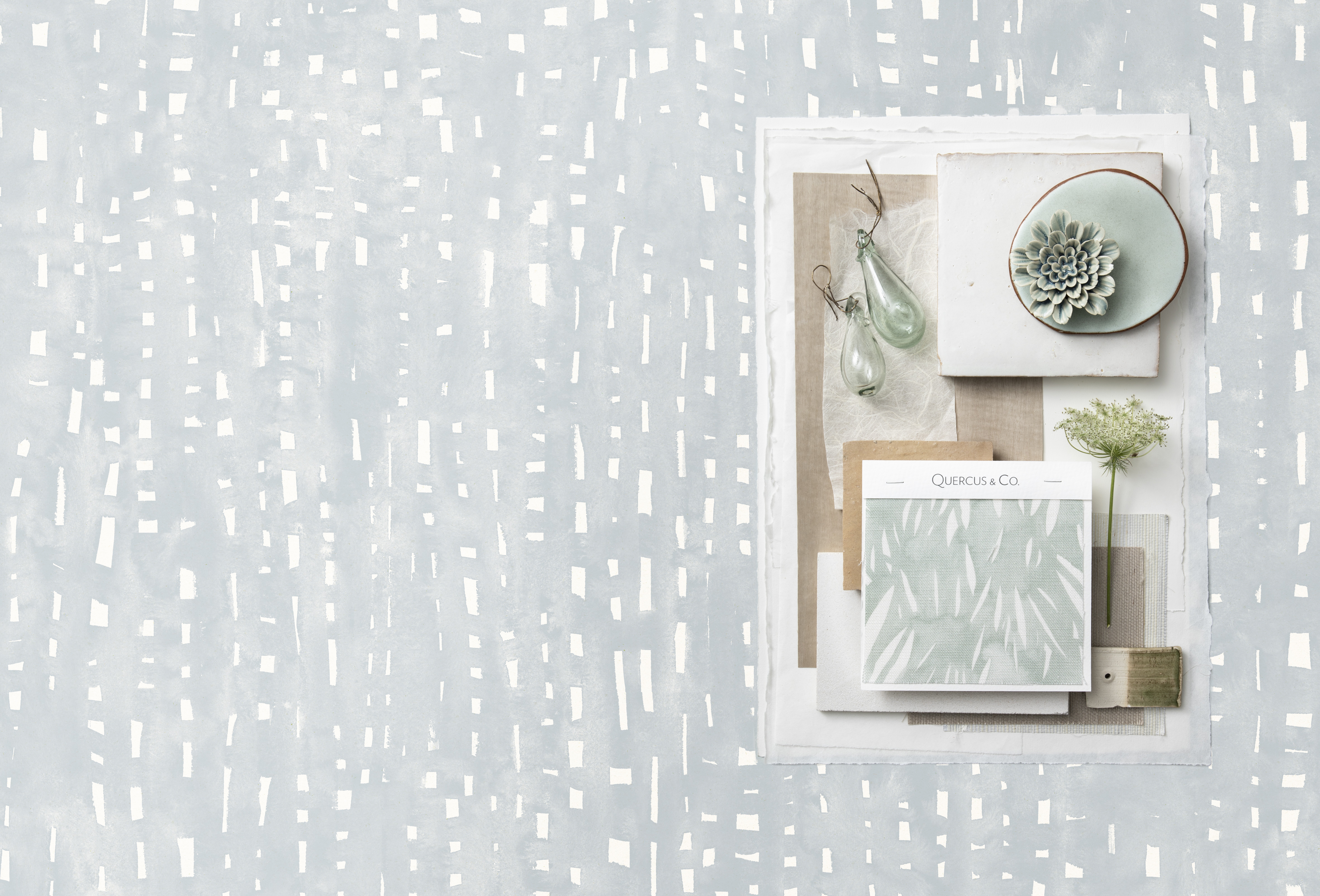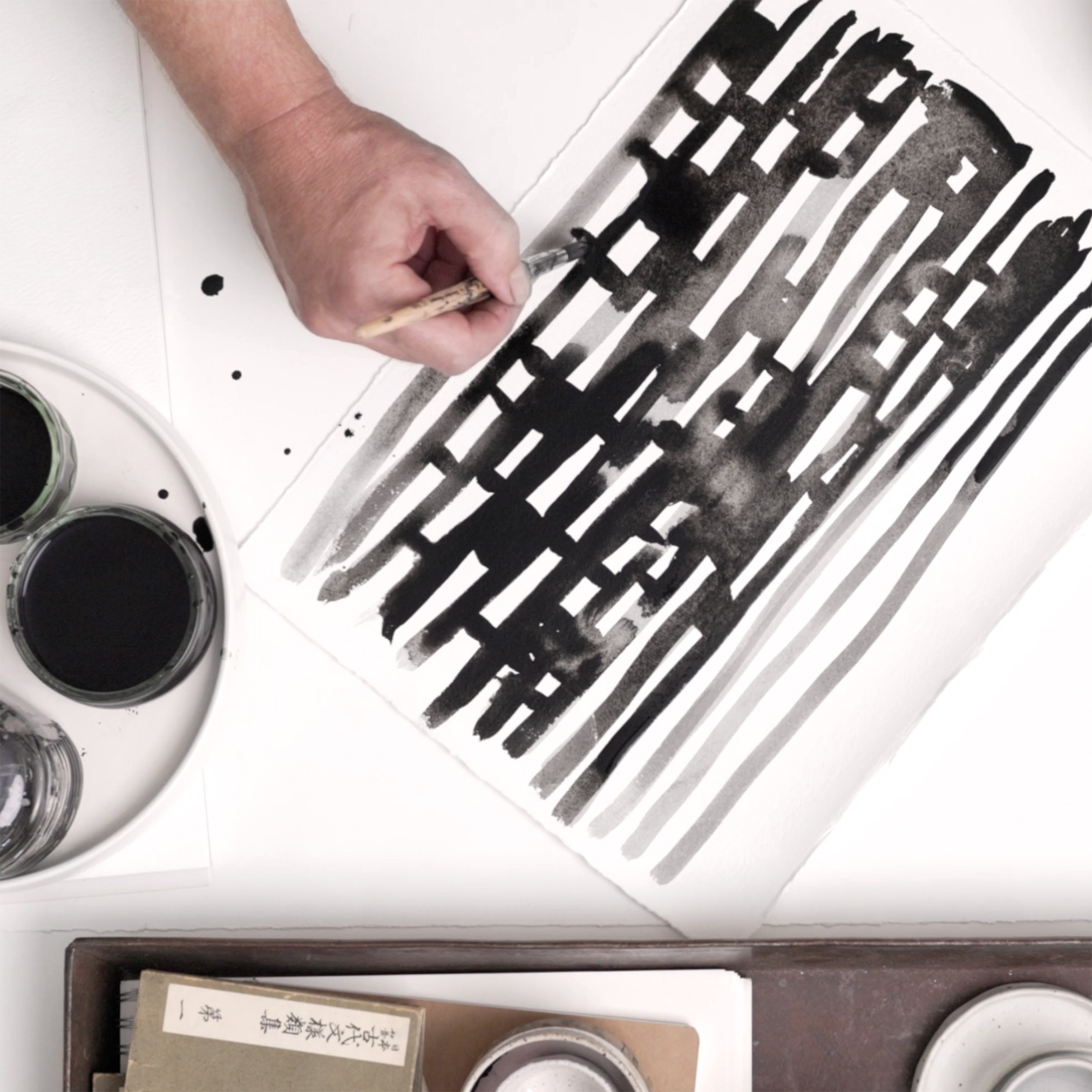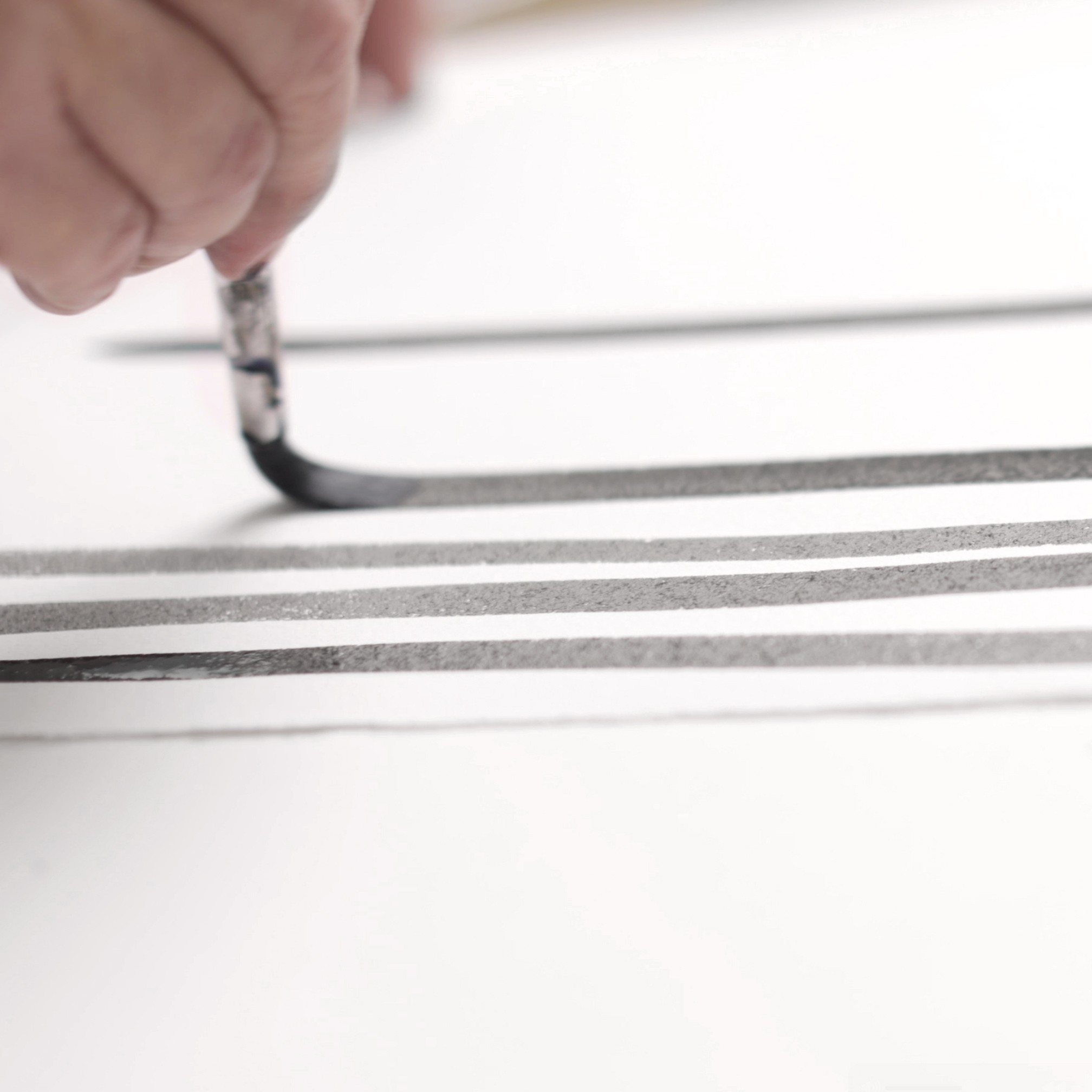 This pattern was created from experimental mark-making using a brush, ink, and heavyweight cotton rag paper. Adam worked with three carefully balanced ink mixtures—one deep and concentrated, one light and watery, and one in between. This allowed for a range of painterly effects: decisive, sharp-edged strokes and delicate, watery blurs that bleed and soften into the fibres of the paper. The process was intuitive—a dialogue between control and unpredictability, much like the movement of rain itself.