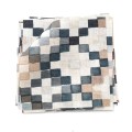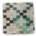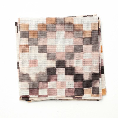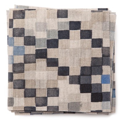 TAPESTRY is based on an old, worn-out diamond Kilim. The blotted and washed-in watercolour effects are intended to represent the faded and frayed sections of the woven rug.