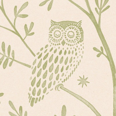 Two wise owls taking forty winks. Sitting in a huge lolly-pop tree, the owls are surrounded by a quiet starry night.